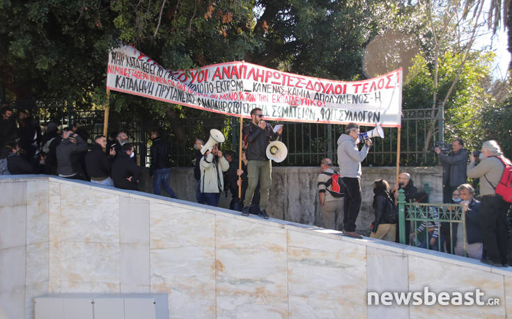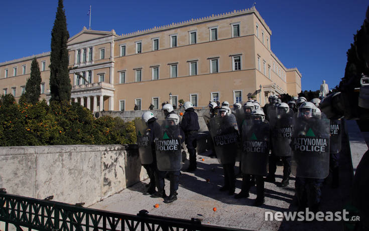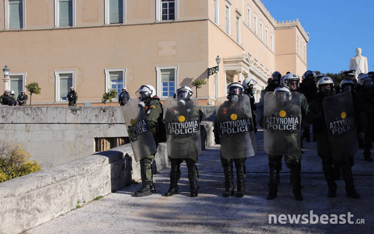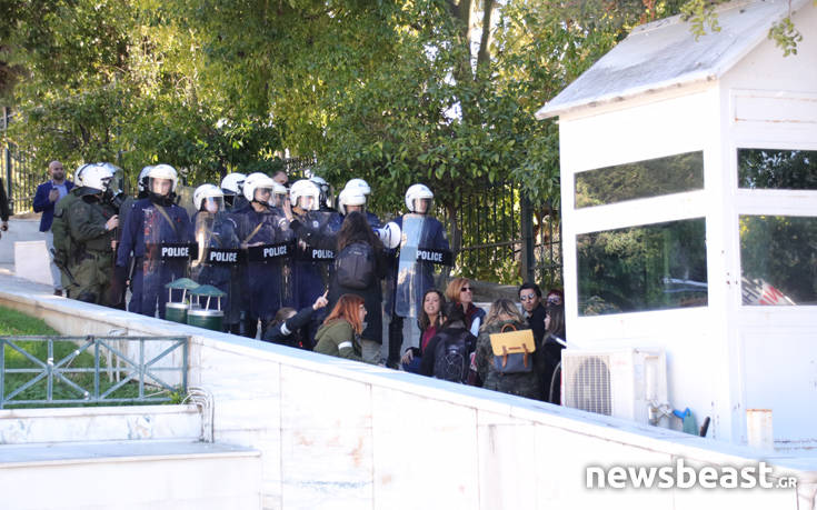 Ο χώρος γύρω από το Κοινοβούλιο ήταν «αστακός», με τους αστυνομικούς να έχουν φράξει τις δύο εισόδους. ενώ προληπτικά έχουν αποχωρήσει από το σημείο οι εύζωνες.