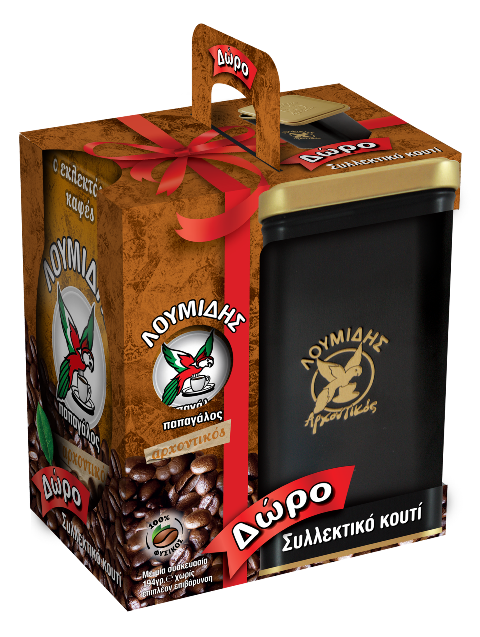 Λίγο πριν τις γιορτές των Χριστουγέννων ο Λουμίδης Παπαγάλος Αρχοντικός σας κάνει δώρο ένα μοναδικό κουτί αποθήκευσης καφέ σε μαύρο χρώμα, με χρυσές λεπτομέρειες, με κάθε αγορά μίας συσκευασίας 194γρ.