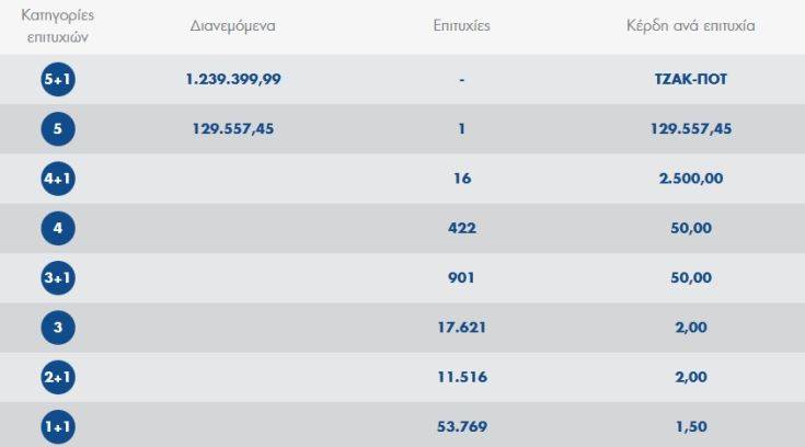 Οι τυχεροί αριθμοί είναι: 15, 16, 31, 33, 40 ΤΖΟΚΕΡ ο αριθμός: 15