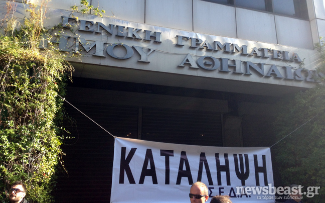 Σε κατάληψη του δημαρχείου Αθηνών, στη Λιοσίων, προχώρησαν εκ νέου μέλη της ΠΟΕ-ΟΤΑ, στο πλαίσιο των κινητοποιήσεων τους, προκειμένου να μην αποσταλούν καταστάσεις και στοιχεία που αφορούν τη σύνθεση του προσωπικού.