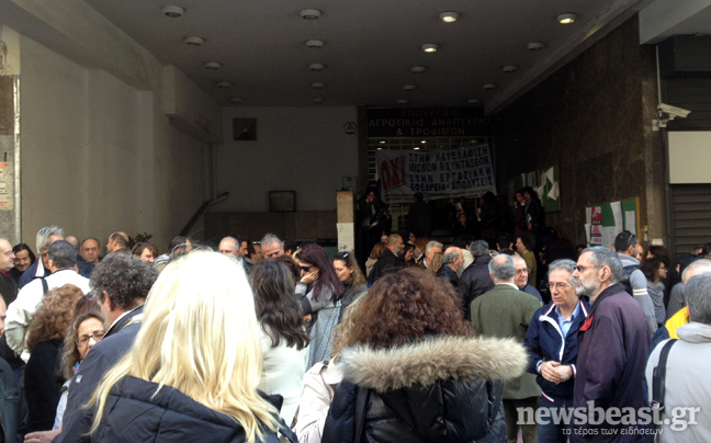 «Υπ’ ατμόν» και οι υπάλληλοι του υπουργείου Αγροτικής Ανάπτυξης οι οποίοι απεργούν και πραγματοποιούν παράσταση διαμαρτυρίας στο κτίριο της Αχαρνών.