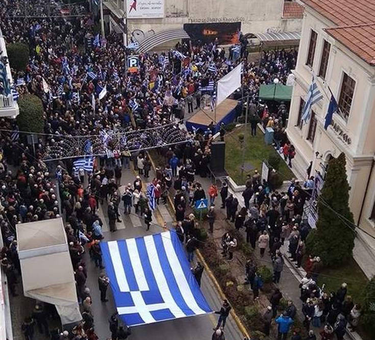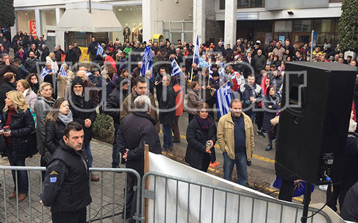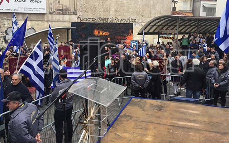 Άνθρωποι όλων των ηλικιών με γαλανόλευκες σημαίες στα χέρια, φωνάζουν για την ελληνικότητα της Μακεδονίας και στέλνουν ένα αυστηρό μήνυμα στην κυβέρνηση ενώ ισχυρή είναι η παρουσία της ελληνικής αστυνομίας, σύμφωνα με το veriotis.gr.