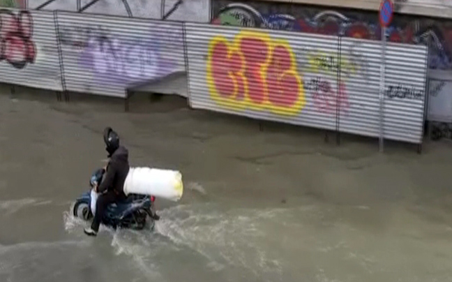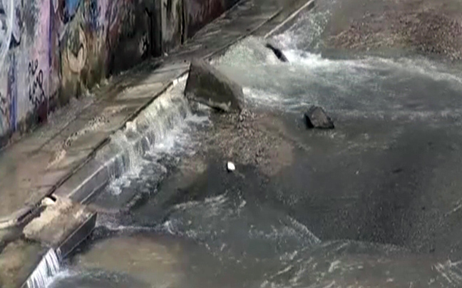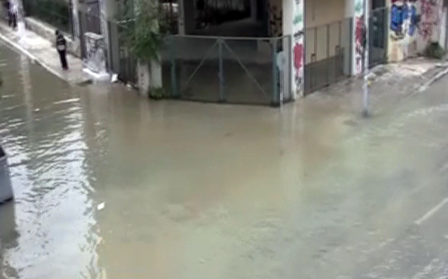Με δυσκολία διεξάγεται η κυκλοφορία των οχημάτων στην οδό Ομηρίδου Σκυλίτση στον Πειραιά, καθώς έσπασε αγωγός της ΕΥΔΑΠ με αποτέλεσμα να έχει πλημμυρίσει το οδόστρωμα.