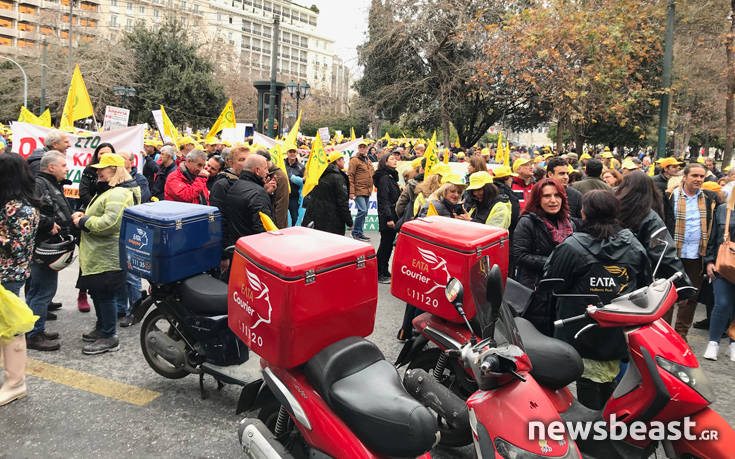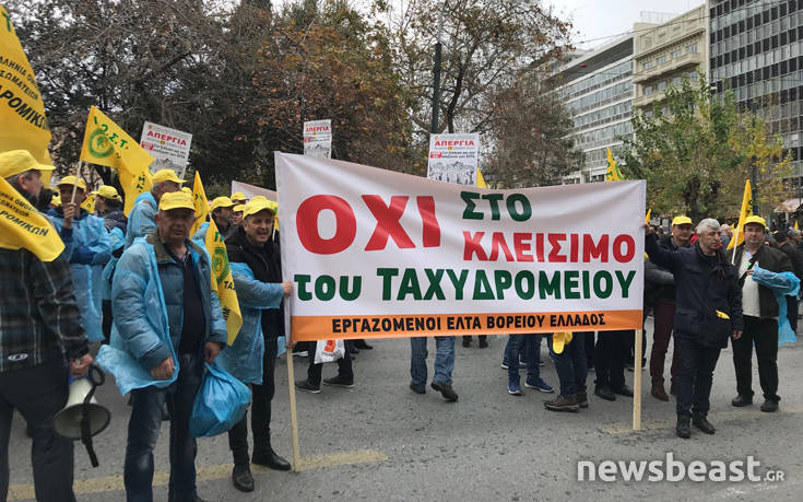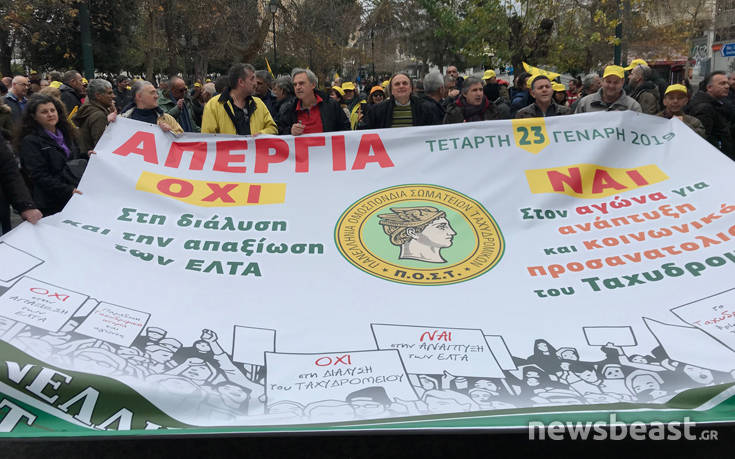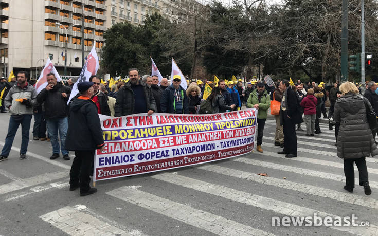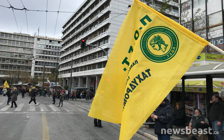 Στο πλαίσιο 24ωρης πανελλαδικής απεργίας που κήρυξε η Πανελλήνια Ομοσπονδία Σωματείων Ταχυδρομικών, εργαζόμενοι στα ΕΛΤΑ προχώρησαν σε κινητοποίηση και πορεία στο κέντρο της Αθήνας.