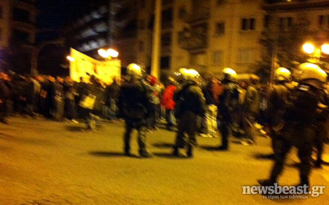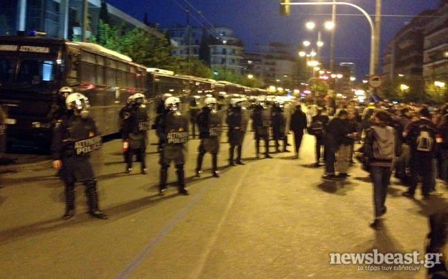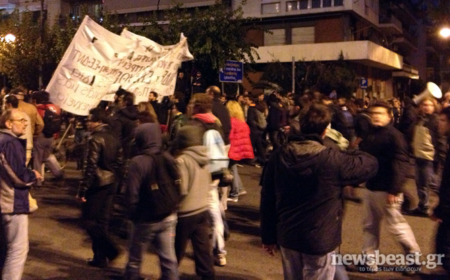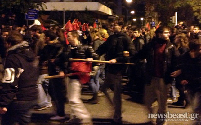 Μεταξύ των διαδηλωτών βρίσκονται και άτομα που πρόσκεινται στον αντιεξουσιαστικό χώρο και αυτή τη στιγμή κινούνται στο ύψος του «Νίμιτς».