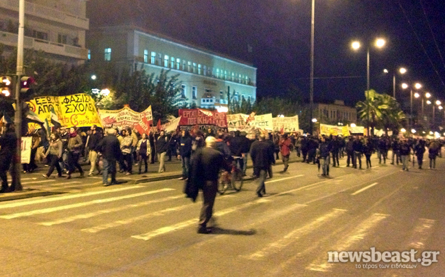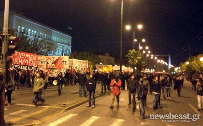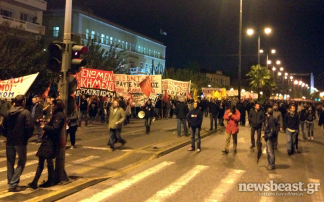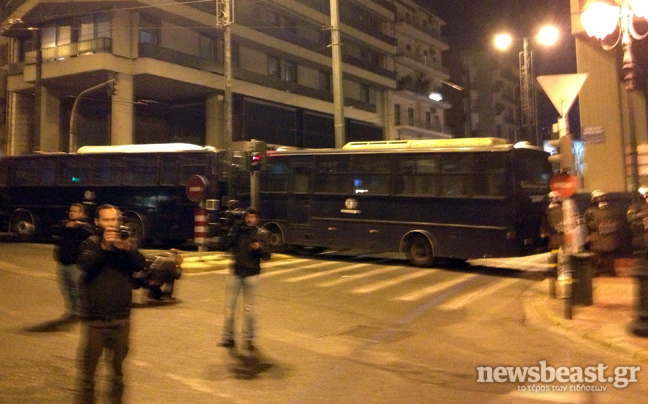 Αντιπροσωπεία των διαδηλωτών διαπραγματεύονται με τα ΜΑΤ, προκειμένου να τους επιτραπεί να περάσουν και να κατευθυνθούν στην πρεσβεία των ΗΠΑ.