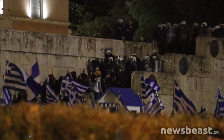 Μέχρι εκείνη τη στιγμή το συλλαλητήριο για τη Μακεδονία πραγματοποιούταν χωρίς κάποιο απρόοπτο. Η αστυνομία μέχρι στιγμής δεν έχει αντιδράσει.