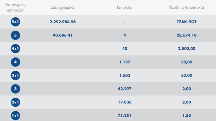 Αυτό σημαίνει ότι στην ερχόμενη κλήρωση της Πέμπτης το Τζόκερ θα μοιράσει τουλάχιστον 2.800.000 ευρώ σε όποιον τυχερό μαντέψει τους μαγικούς αριθμούς.