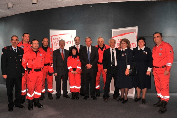 Την εκδήλωση προλόγισαν ο Πρόεδρος του Ελληνικού Ερυθρού Σταυρού κ. Γεώργιος Χλαμπουτάκης και ο Πρέσβης της Ελβετίας στην Αθήνα κ. Lorenzo Amberg.