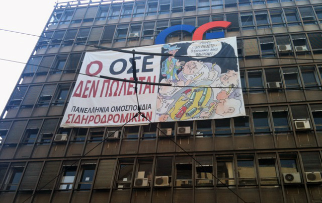 Στο μεταξύ, οι εργαζόμενοι έχουν αναρτήσει ένα τεράστιο πανό στην είσοδο του κτιρίου όπου στεγάζονται τα κεντρικά γραφεία του ΟΣΕ, επί της Καρόλου, όπου αναγράφεται: «Ο ΟΣΕ δεν πωλείται»…