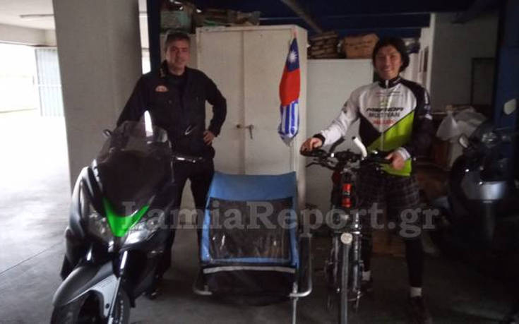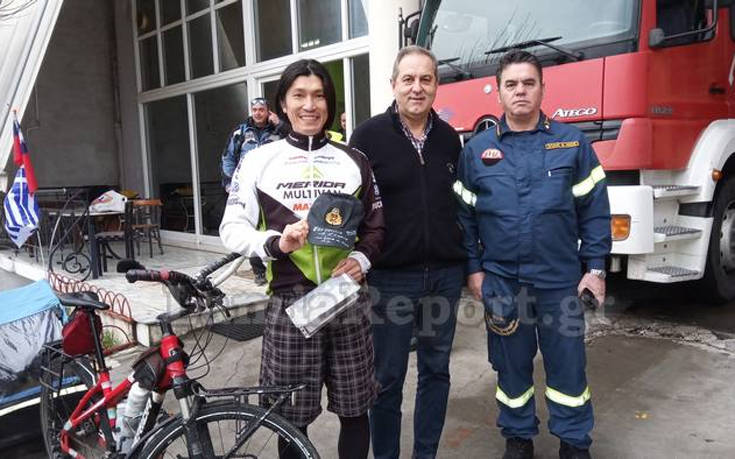 Έναν διαφορετικό επισκέπτη, υποδέχτηκαν το βράδυ της Τετάρτης 30 Ιανουαρίου οι πυροσβέστες της Π.Υ. Λαμίας. Στην είσοδο της υπηρεσίας τους βρέθηκε ο λεγόμενος και ποδηλάτης των τεσσάρων ηπείρων, κατά κόσμον Τζάκυ Τσεν (Jacky Chen), που κάνει τον γύρο του κόσμου πάνω σε δύο ρόδες.