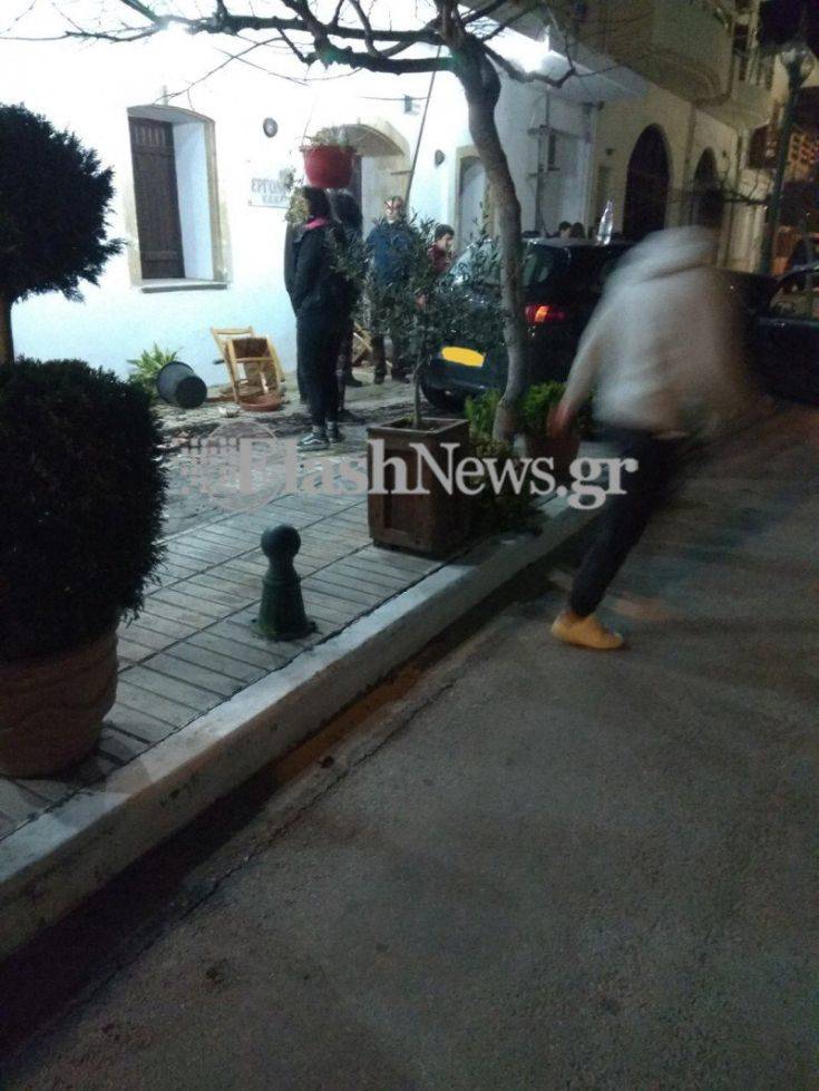 Πήρε σβάρνα τα πάντα στο πέρασμά του πέφτοντας στα τραπέζια και τις καρέκλες ταβέρνας. Ο λόγος για ένα αυτοκίνητο το οποίο ακολούθησε τρελή πορεία μετά από τροχαίο ατύχημα στην Κάτω Σούδα λίγο μετά τις 21.30 το βράδυ.