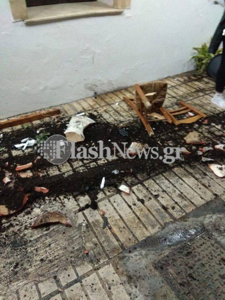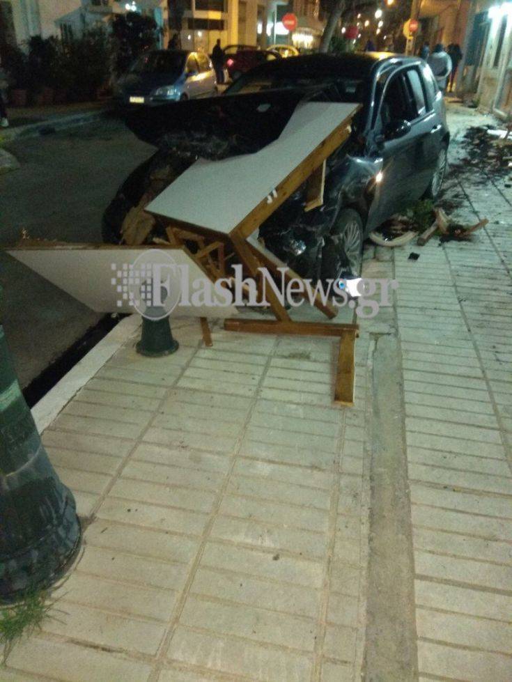 Στο ατύχημα ενεπλάκησαν δυο αυτοκίνητα. Το ένα από αυτά ανέβηκε στο πεζοδρόμιο και διέλυσε γλάστρες, τραπέζια και καρέκλες μιας ταβέρνας που λειτουργεί στην περιοχή.