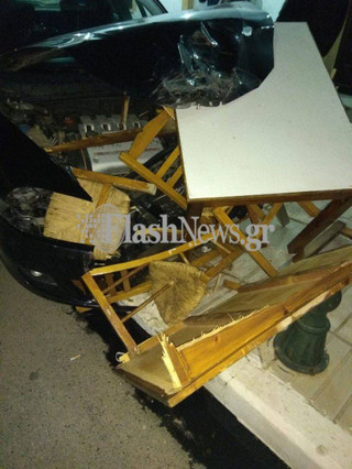 Δεν είναι λίγες οι περιπτώσεις που αυτοκίνητα κατέληξαν σε καταστήματα. Απόψε το ένα όχημα διέλυσε τραπέζια και καρέκλες ταβέρνας, έχοντας ανέβει πάνω στο πεζοδρόμιο. Δεν τολμά να φανταστεί κανείς τι θα είχε συμβεί αν εκείνη την ώρα βρισκόταν στο σημείο κάποιος άνθρωπος.