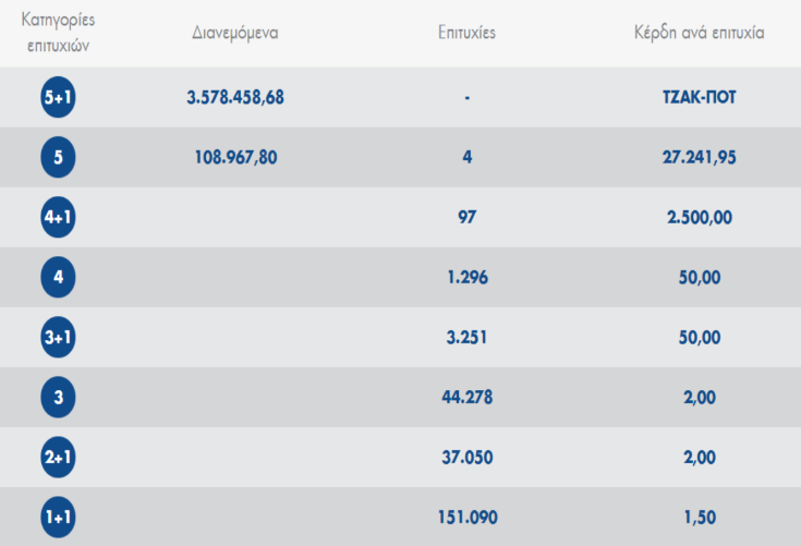 Οι τυχεροί αριθμοί είναι: 3, 5, 18, 28, 39 Τζόκερ ο αριθμός: 9
