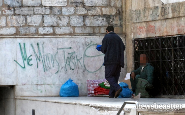 Πολλοί περαστικοί ευτυχώς, κάνοντας με την ελάχιστη συνεισφορά τους πολύ περισσότερα από όσα έκανε το κράτος γι αυτούς τους ανθρώπους, δίνουν κάποια λίγα χρήματα ή τρόφιμα ή ρούχα βοηθώντας τους να βγάλουν ακόμα μια δύσκολη μέρα.