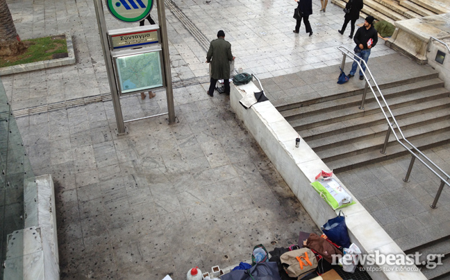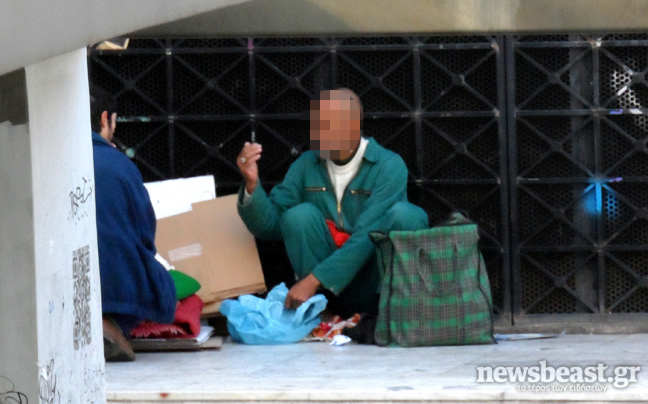 Λίγα μέτρα από τα κάγκελα που κλείνουν το δρόμο στους εκάστοτε διαδηλωτές που φωνάζουν για την κρίση που μαστίζει τη χώρα, κείτονται στο περιθώριο της πλατείας Συντάγματος, τα ίδια τα θύματα αυτής της κρίσης.