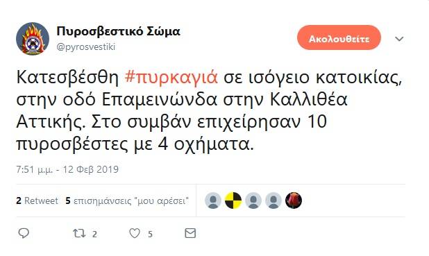 Πυρκαγιά ξέσπασε τα ξημερώματα σε ισόγειο μονοκατοικίας, στην οδό Επαμεινώνδα 61, στην Καλλιθέα Αττικής.