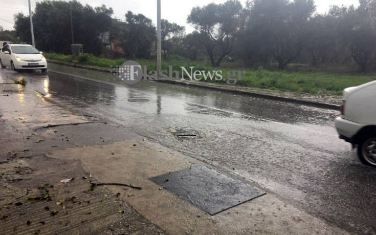 Στην Λεωφόρο Σούδας υπερχείλισε φρεάτιο το καπάκι του οποίου βγήκε στον δρόμο.