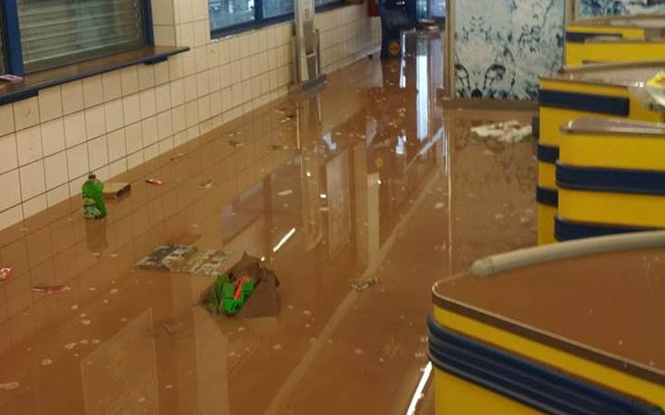 Το κατάστημα πλημμύρισε όταν μεγάλοι όγκοι νερού, αποτέλεσμα της κακοκαιρίας στα Χανιά, δεν βρήκαν άλλη διέξοδο και πλημμύρισαν το γνωστό σουπερ μάρκετ καταστρέφοντας προϊοντα και εξοπλισμό.