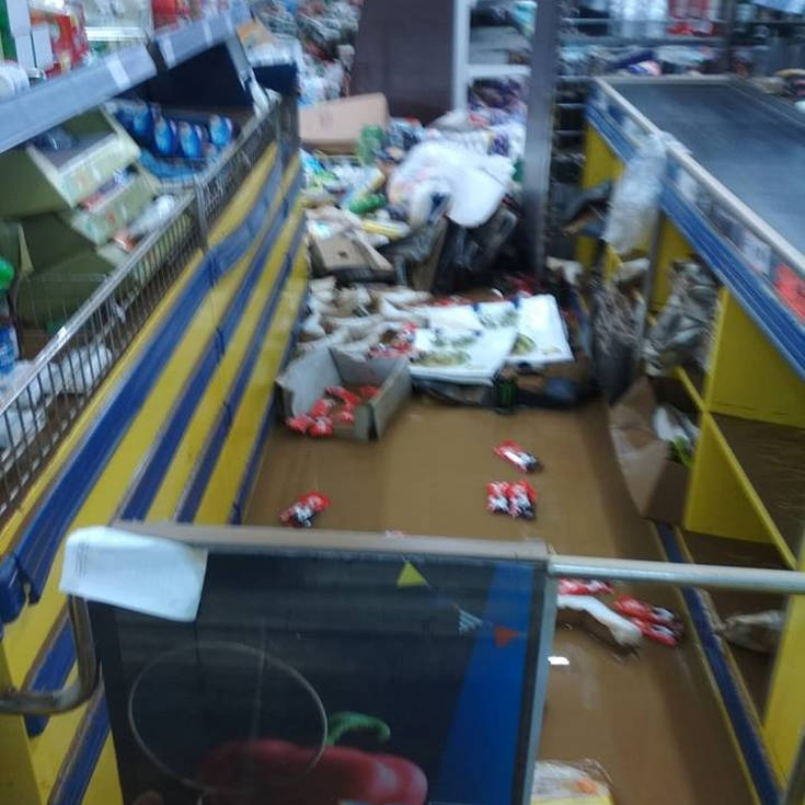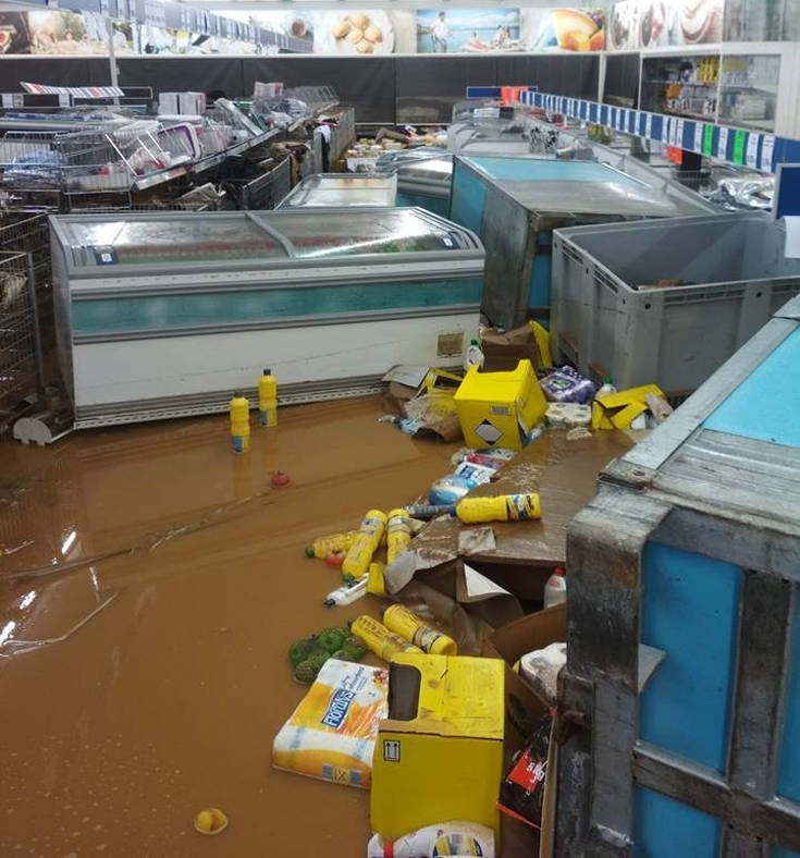 Εικόνες ολικής καταστροφής παρουσιάζει το κατάστημα Lidl που βρίσκεται στον Πλατανιά, κοντά στην γέφυρα.