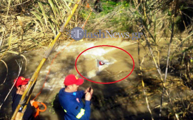 Ακολουθεί η φωτογραφία του flashnews.gr, όπου φαίνεται το όχημα έχει βυθιστεί μέσα στο νερό.