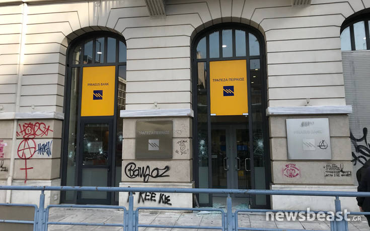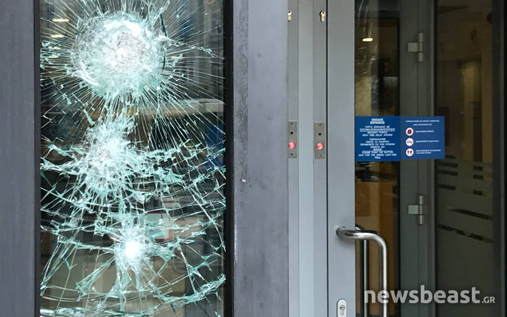 Επίθεση πραγματοποίησαν άγνωστοι το μεσημέρι της Τρίτης σε υποκατάστημα τράπεζας στην πλατεία Κάνιγγος.
