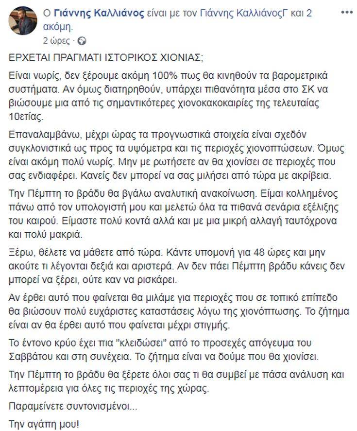 Δείτε την ανάρτηση του μετεωρολόγου στο Facebook: