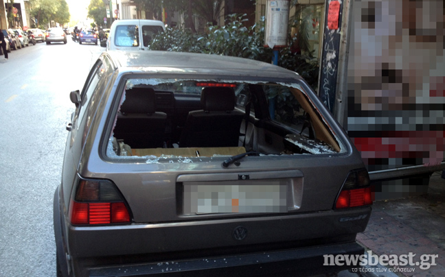 Από τα επεισόδια υπέστη υλικές ζημιές ένα αυτοκίνητο που βρισκόταν σταθμευμένο στο σημείο.