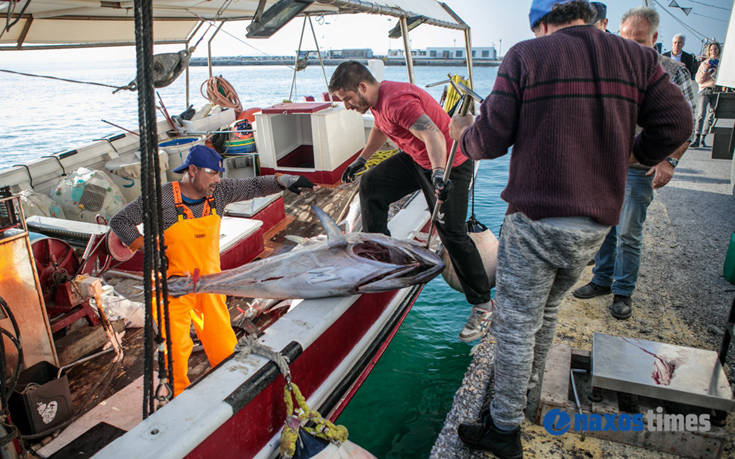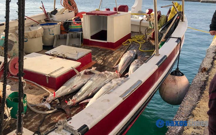 Τόνους πάνω από 300 κιλά ξεφόρτωσε στο λιμάνι της Νάξου αλιευτικό σκάφος.