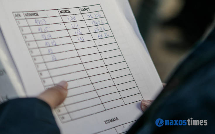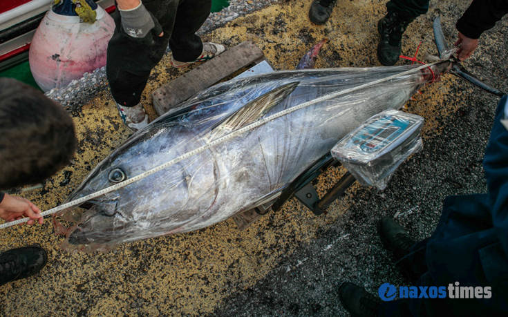 Τους έξι τεράστιους τόνους, από 35 έως 84 κιλά ο καθένας, ψάρεψε το αλιευτικό από την Κάρπαθο «Παναγία Πουλαριανή» στο πέλαγος του Νοτίου Αιγαίου και τους ξεφόρτωσε στο λιμάνι της Νάξου όπου ξαναφορτώθηκαν σε φορτηγό αυτοκίνητο για να πάνε στον προορισμό τους.