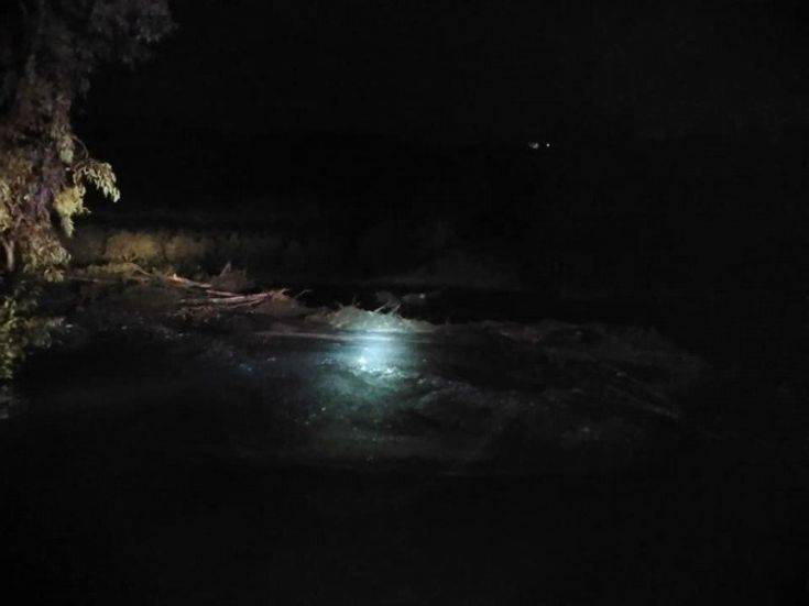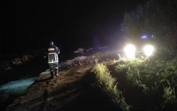 Παρά το σκοτάδι οι Πυροσβέστες ανέσυραν το αυτοκίνητο το οποίο έχει υποστεί πολύ μεγάλες ζημιές.