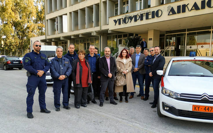 Παραδόθηκαν χθες, από τον Υπουργό Δικαιοσύνης, Διαφάνειας και Ανθρωπίνων Δικαιωμάτων κ. Μιχάλη Καλογήρου, τα πρώτα τέσσερα καινούργια οχήματα στα Καταστήματα Κράτησης (ΚΚ), που προστίθενται στο στόλο του σωφρονιστικού συστήματος, μετά από 15 και πλέον χρόνια.