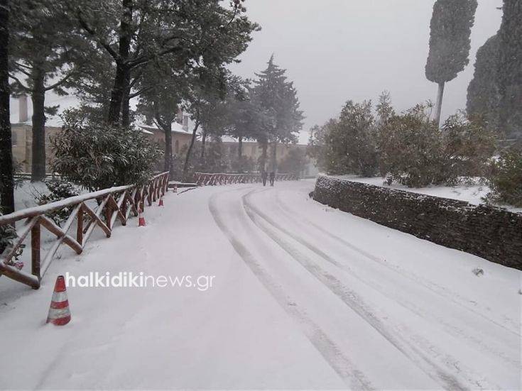 Οι δρόμοι στην Αθωνική Πολιτεία έχουν σκεπαστεί από πολύ χιόνι και η κυκλοφορία, όπου μπορεί να διεξαχθεί, γίνεται μόνο με αλυσίδες. Τα δρομολόγια των πλοίων δεν πραγματοποιήθηκαν σήμερα λόγω της σφοδρής κακοκαιρίας σύμφωνα με το halkidiknews.gr.