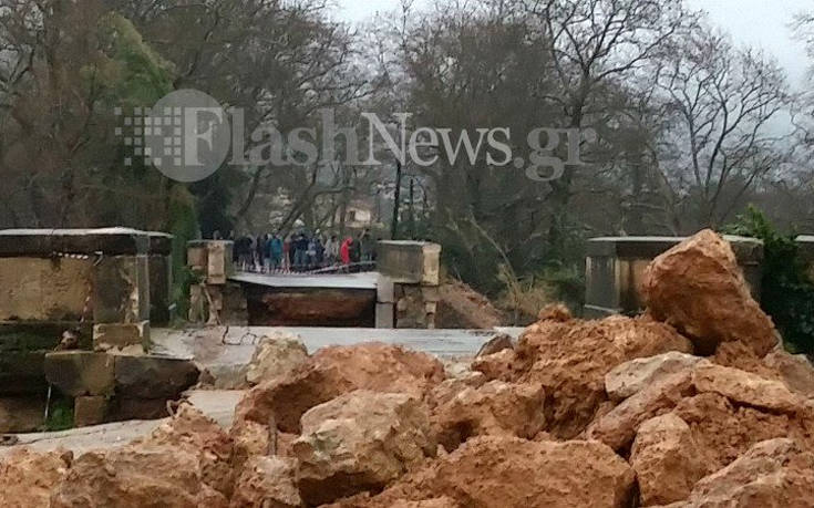 Δείτε την συγκλονιστική στιγμή της κατάρρευσης της ιστορικής γέφυρας από την Νέα Τηλεόραση η οποία εκείνη την στιγμή έκανε ζωντανή μετάδοση για την κακοκαιρία.