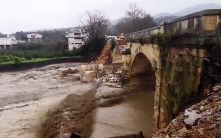Η γέφυρα του Κερίτη στον Αλικιανό κατέρρευσε το μεσημέρι της Δευτέρας καθώς δεν άντεξε το νέο χτύπημα της κακοκαιρίας, παρά τις προσπάθειες θεμελίωσης της γέφυρας που προηγήθηκαν τις προηγούμενες ημέρες.