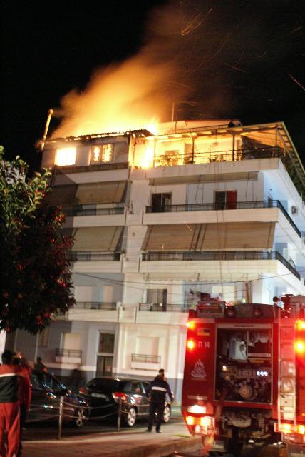 Οι γείτονες έντρομοι αντίκρισαν το ρετιρέ να λαμπαδιάζει μέσα σε λίγα λεπτά και ειδοποίησαν αμέσως την Πυροσβεστική, που με τρία οχήματα και 9 άνδρες ανέλαβε το δύσκολο έργο της κατάσβεσης, που έγινε ακόμα πιο δυσχερές λόγω των ισχυρών δυτικών ανέμων που πνέουν στην περιοχή.