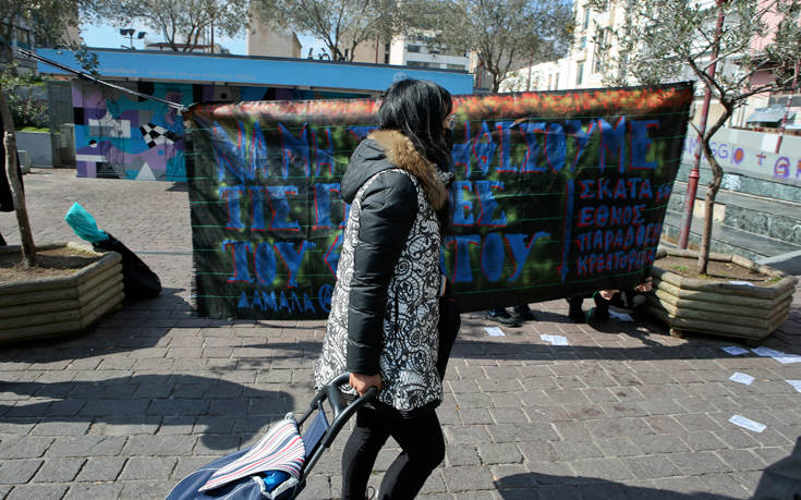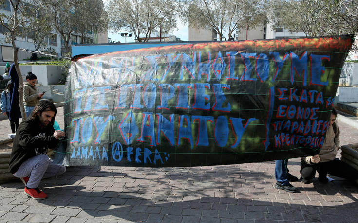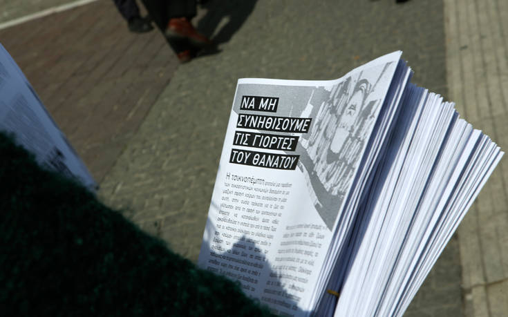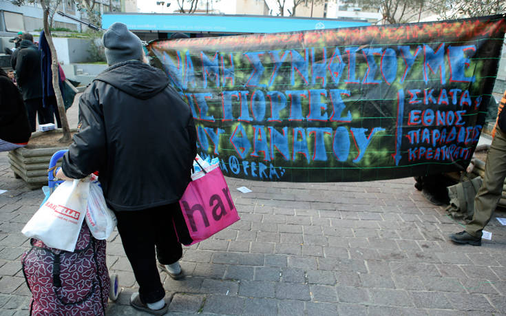 Την ώρα που οι πολίτες έκαναν τα ψώνια της ημέρας κι ετοιμάζονταν να τσικνίσουν, οι διαμαρτυρόμενοι μοίρασαν φυλλάδια με το μήνυμα «να μη συνηθίσουμε τις γιορτές του θανάτου» και πέταξαν τρικάκια με το σύνθημα «να φάτε φακές».