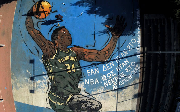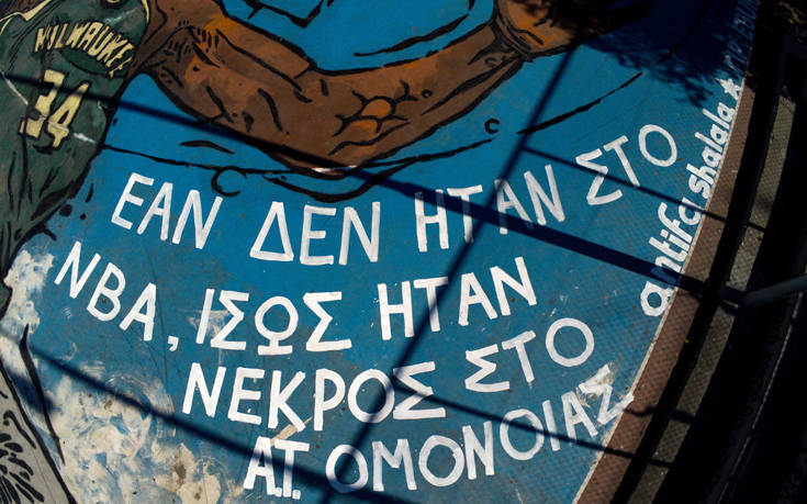 Ένα αντιρατσιστικό μήνυμα πρόσθεσαν μέλη αντιφασιστικής συλλογικότητας στο διάσημο πια γκραφίτι που κοσμεί στο ανοιχτό γήπεδο στα Σεπόλια όπου ο Γιάννης Αντετοκούνμπο έκανε τα πρώτα του μπασκετικά βήματα.