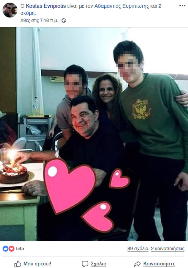 Τα 56α γενέθλιά του γιόρτασε ο ηθοποιός Κώστας Ευριπιώτης μέσα στο νοσοκομείο όπου νοσηλεύεται από την Τσικνοπέμπτη, εξαιτίας λοίμωξης του αναπνευστικού.