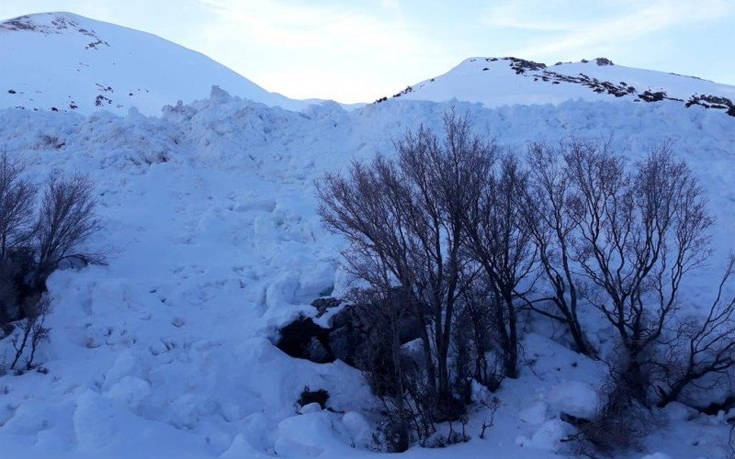 Στην φωτογραφία που ακολουθεί φαίνεται η περιοχή μετά τη χιονοστιβάδα κοντά στο οροπέδιο Νιάτο