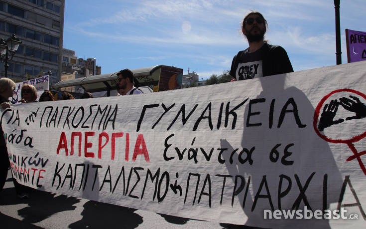 Νωρίτερα είχαν συγκεντρωθεί στην πλατεία Κλαυθμώνος, καλώντας παράλληλα τις εργαζόμενες στον ιδιωτικό και δημόσιο τομέα, αγρότισσες, φοιτήτριες, μαθήτριες και όλες τις γυναίκες, να σταματήσουν την εργασία και τα μαθήματα, να μην προχωρήσουν σε αγορές και να απέχουν από τις ενδοοικογενειακές υποχρεώσεις για ολόκληρη την ημέρα.