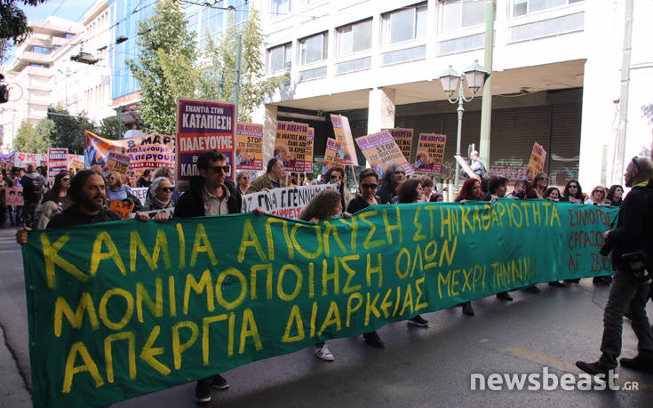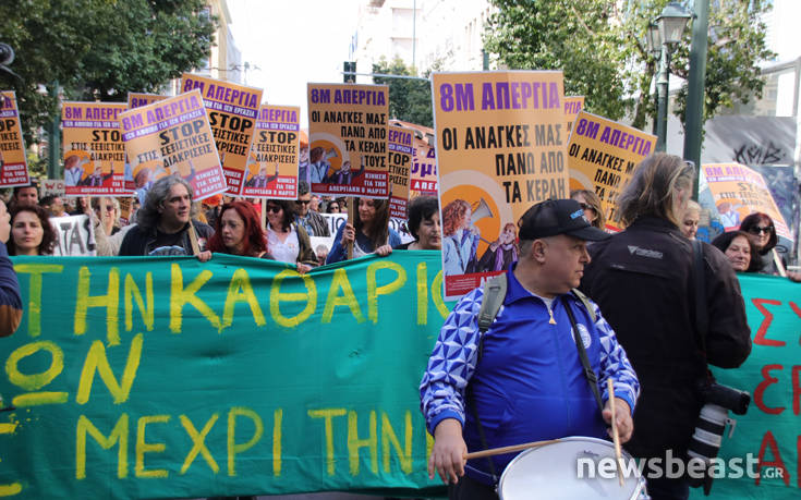 Η Φεμινιστική Απεργία διοργανώθηκε φέτος για πρώτη φορά στην Ελλάδα, με την ΑΔΕΔΥ αλλά και την ΕΣΗΕΑ και την ΠΟΣΠΕΡΤ να προχωρούν σε στάσεις εργασίας.