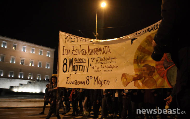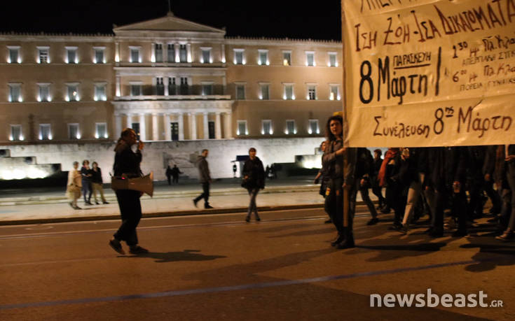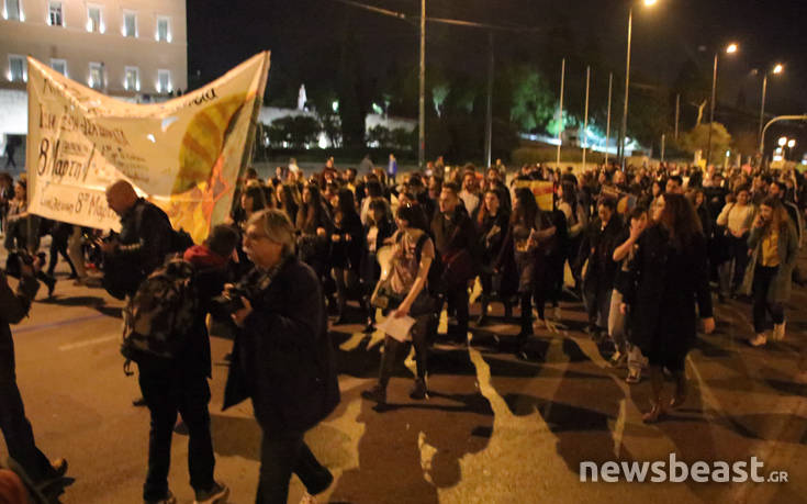 Με πορεία προς τη Βουλή συνεχίστηκε η συγκέντρωση Φεμινιστικών οργανώσεων, γυναικείων συλλογικοτήτων, λοατκί συλλογικοτήτων και οργανώσεων της εξωκοινοβουλευτικής Αριστεράς.