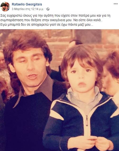 «Σας ευχαριστώ όλους για την αγάπη που είχατε στον πατέρα μου και για τη συμπαράσταση που δείξατε στην οικογένεια μου. Να είστε όλοι καλά. Εγώ μπαμπά δεν σε αποχαιρετώ γιατί σε έχω πάντα μαζί μου» έγραψε στο Facebook.