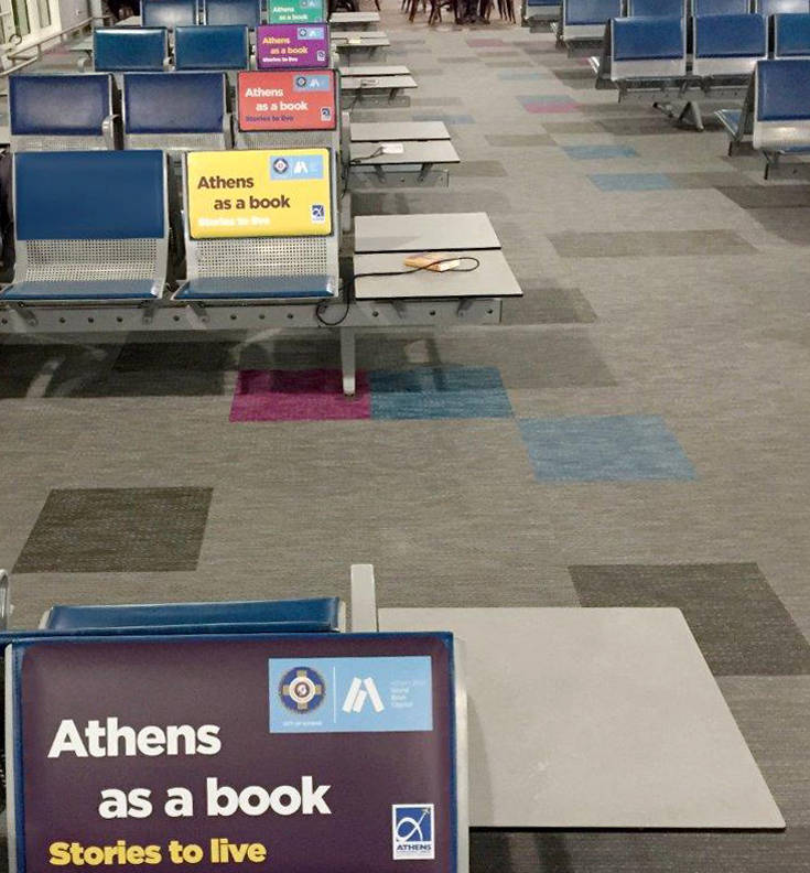 Ένα βιβλίο πριν από την πτήση! Με μία ακόμη ξεχωριστή πρωτοβουλία συνεχίζει το αεροδρόμιο τη συμμετοχή του το Μάρτιο 2019 για την ανάδειξη της Αθήνας σε προορισμό πολιτισμού. Οι επιβάτες που αναχωρούν από την Αθήνα, βρίσκουν πλέον… «γειτονιές βιβλίου» στις αίθουσες αναχώρησης, για μια ξεχωριστή εμπειρία ανάγνωσης που ονομάστηκε «Αthens as a Book»!