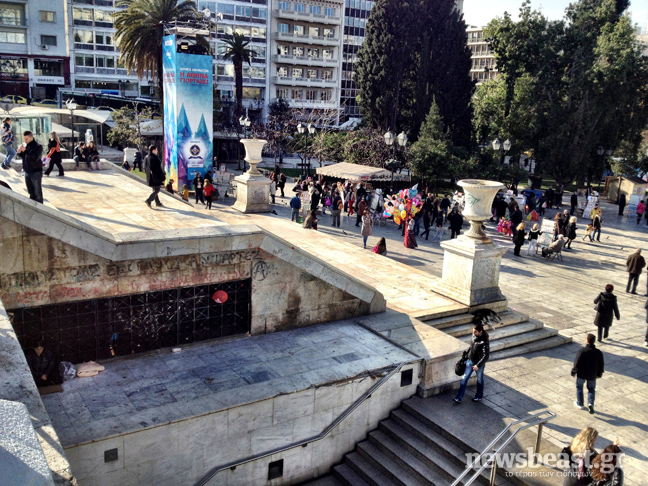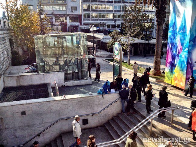 Πάντως, λίγα μέτρα πιο κάτω, ακριβώς πάνω από τις εισόδους του μετρό στο Σύνταγμα αλλά και στην οδό Ερμού, υπάρχουν άστεγοι και επαίτες.