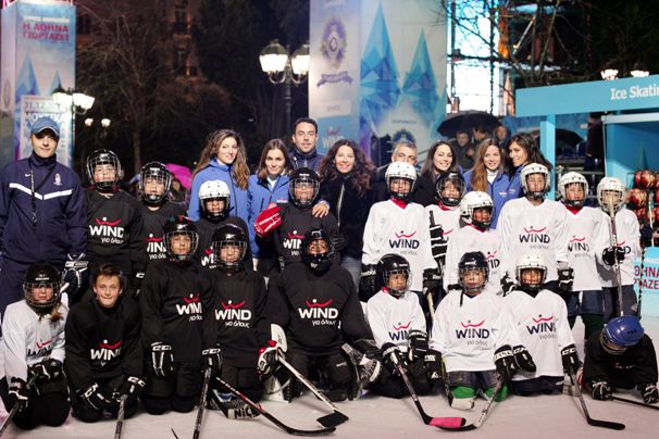 Σε αρένα γηπέδου χόκεϊ επί πάγου μεταμόρφωσε το παγοδρόμιο της πλατείας Συντάγματος η WIND, για έναν μοναδικό αγώνα επίδειξης από τις ομάδες παίδων των «Ταράνδων» και των «Avantes Iron Stickes» .