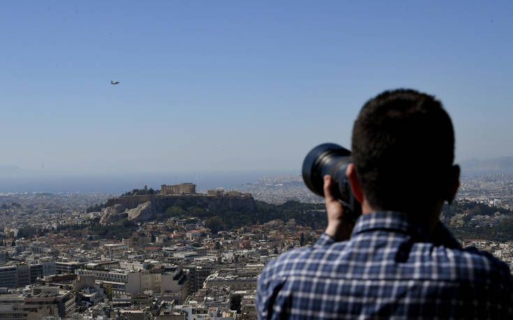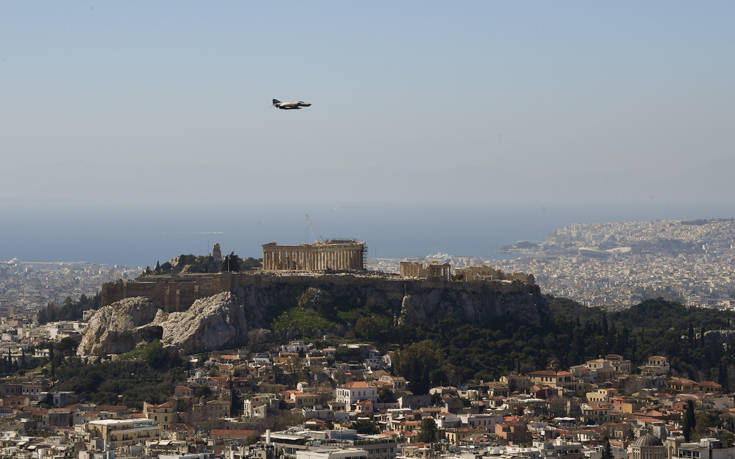 Τα πλάνα από το πέταγμα των αεροσκαφών είναι εντυπωσιακά, αν ληφθεί υπόψιν και ο αίθριος καιρός που επικρατεί σήμερα στην πρωτεύουσα, με καθαρό ουρανό και λαμπερό ήλιο.
