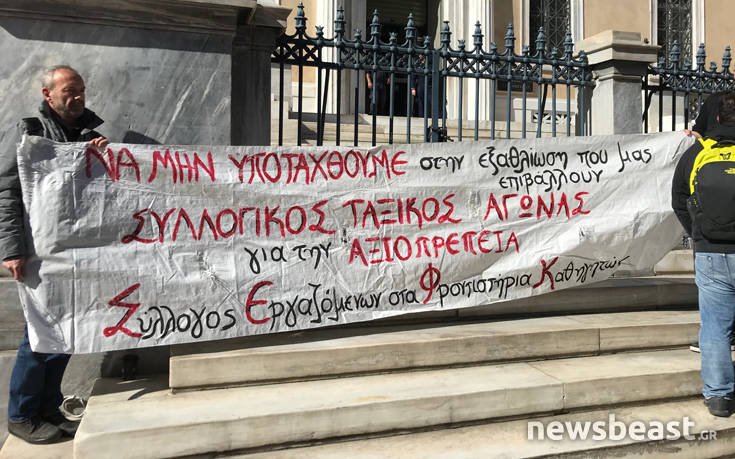 Συγκεντρωμένοι έξω από το Συμβούλιο της Επικρατείας, στην οδό Πανεπιστημίου, βρίσκονται αυτή την ώρα εκπαιδευτικοί Φροντιστηρίων Δευτεροβάθμιας Εκπαίδευσης και Κέντρων Ξένων Γλωσσών, οι οποίοι διαμαρτύρονται για το ωράριο και τις συνθήκες εργασίας και ζητούν να μην μειωθεί κι άλλο ο μισθός τους.
